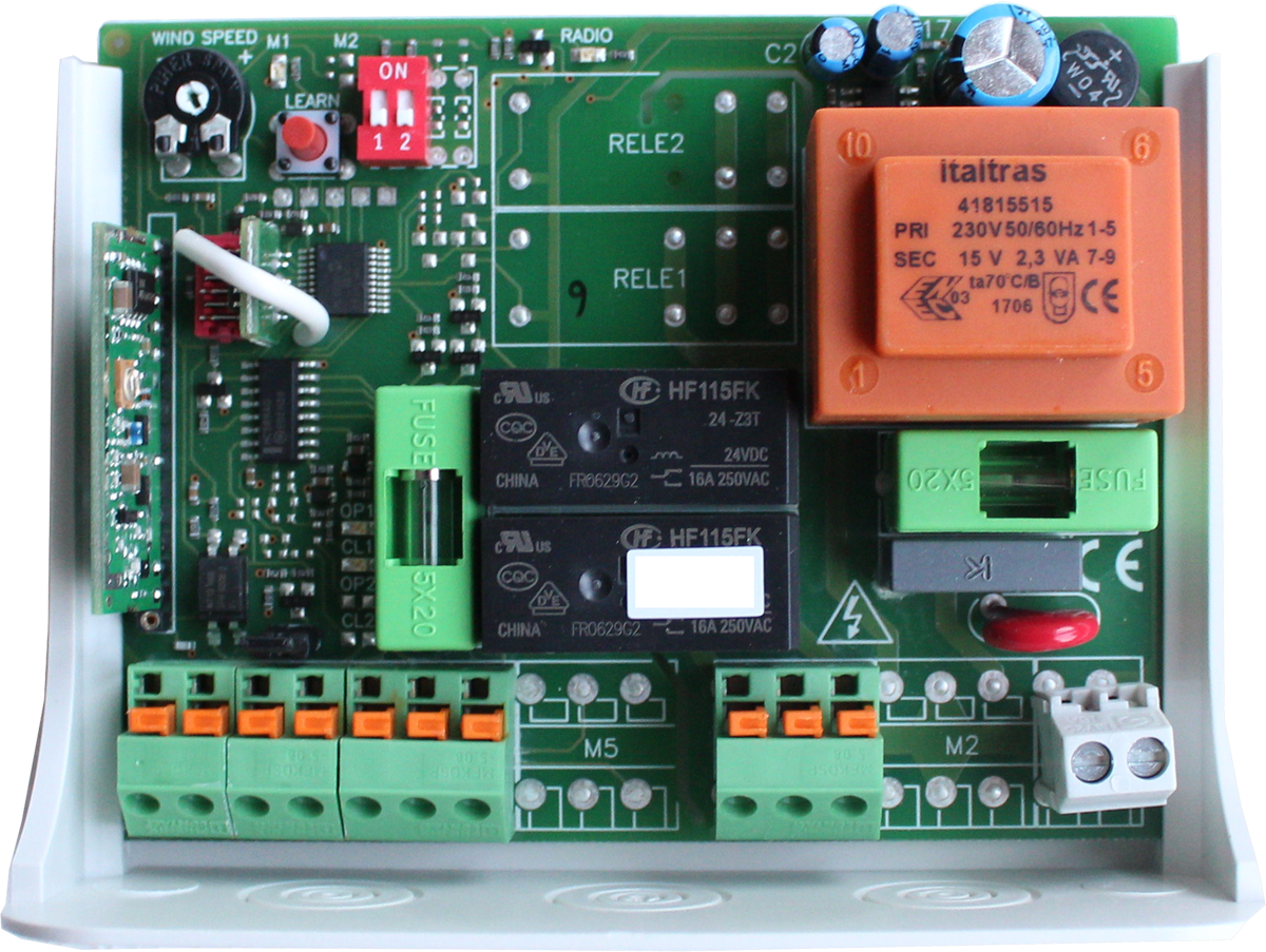 Vezérlőegység napernyőkhöz, redőnyökhöz, stb… szélmérő bemenettel.
