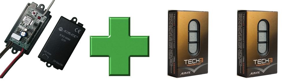 2 db TECH3 távnyitó: Kompatibilis az összes Allmatic 433,92 Mhz-es, ugrókódos rendszerrel.