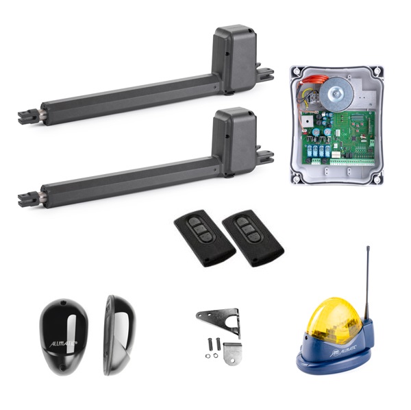 Az ALAP szett tartalma: 1 db vagy 2 db motor (fekete, időjárásálló felület, strapabíró kialakítás, motorfejjel felfelé vagy lefelé is felszerelhető, teljesen fém mechanika, csendes működés) Nyitás és zárás irányú, belső mechanikus végállás BIOS2 vezérlés (lassítás, automata zárás, parciális nyitás…) FT07 fotocella pár 2 db TECH3 távnyitó 2 db áramszüneti kuplungkioldó kulcs szerelési anyagok Magyar nyelvű használati, telepítési útmutató