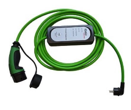 Hordozható éjszakai töltő, vagy más néven vésztöltő elektromos autókhoz, TYPE1 – villás, vagy ipari csatlakozóval.