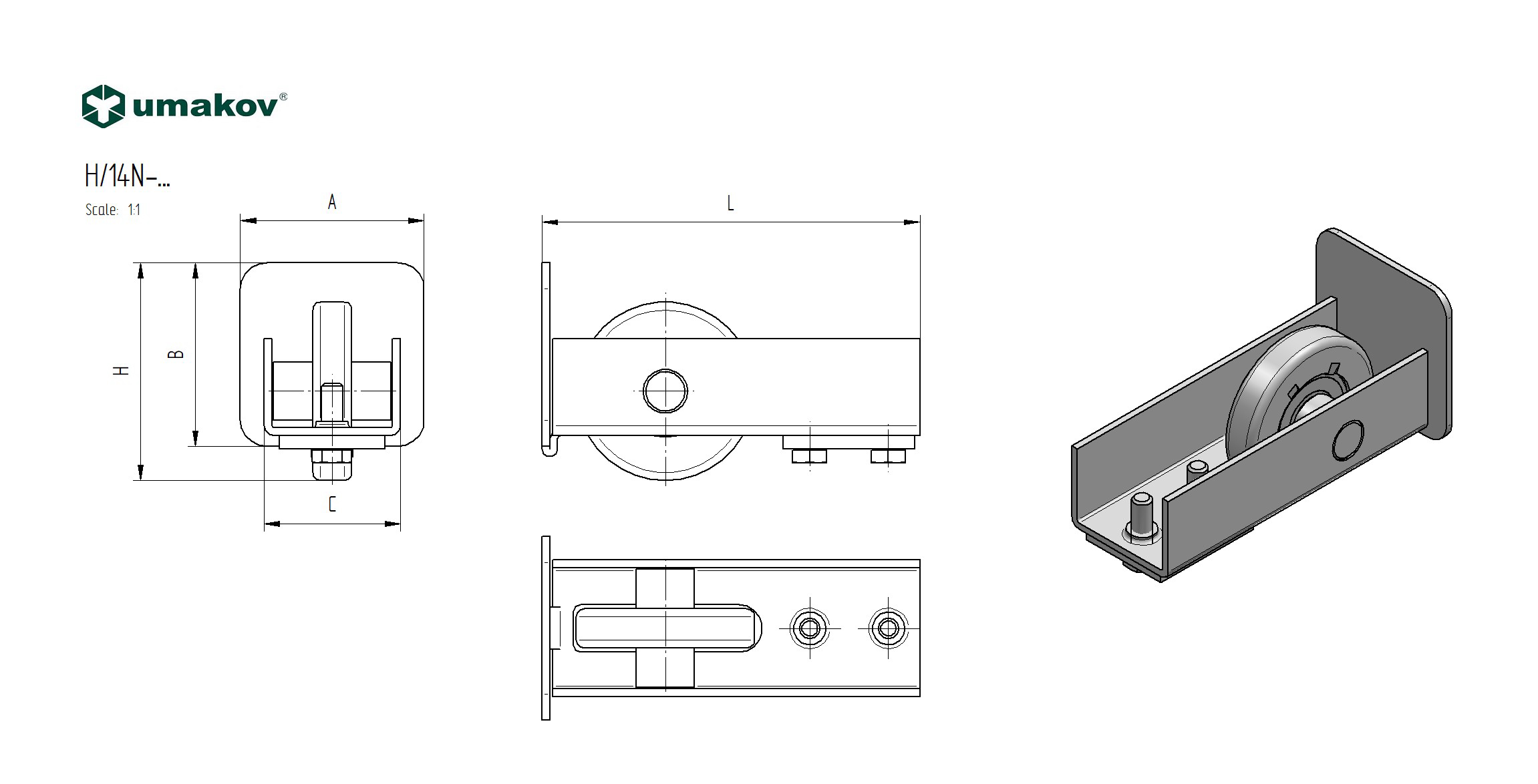 Alsó Felfutó görgő Zn, profile 60×60, antracit