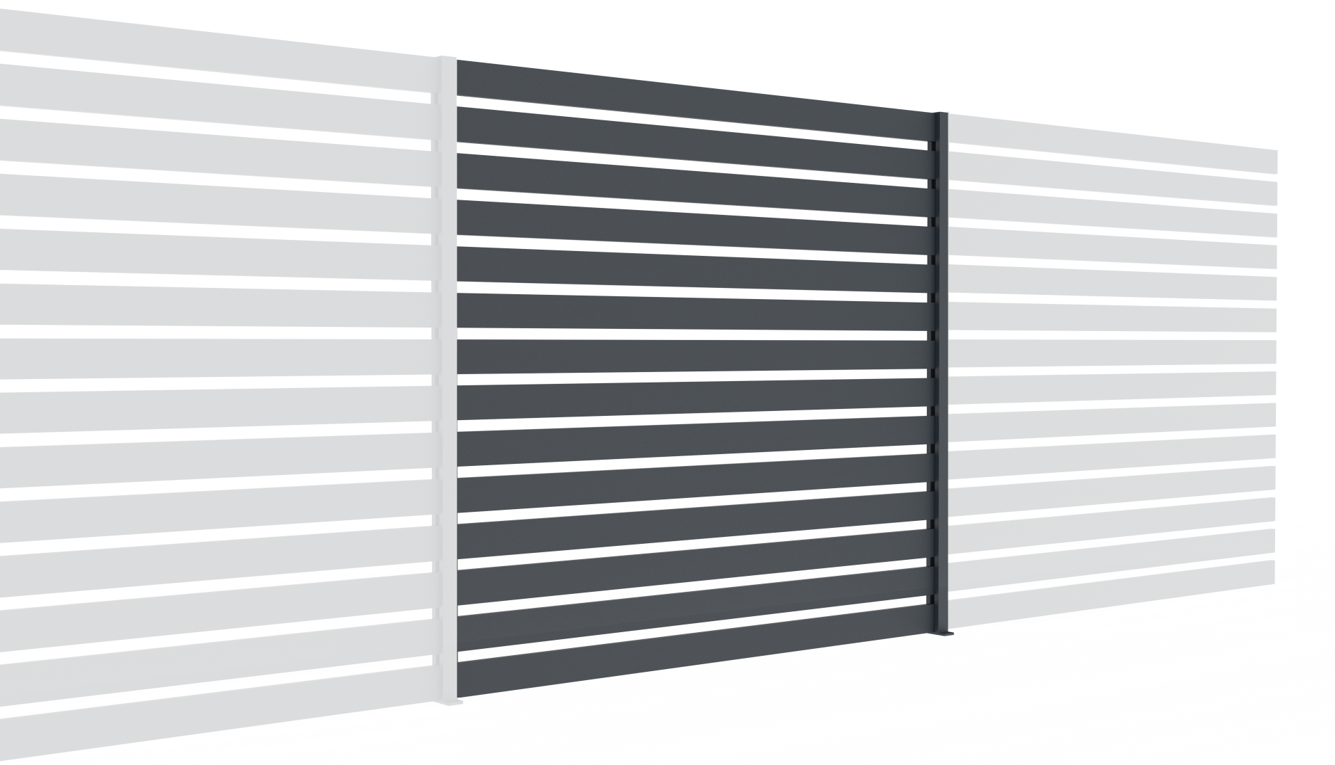 A 1850 mm magas és 2000 mm széles szerelvény 20×100 mm-es alumínium lécekből és egy 50×60-as oszlopból áll. Ez a modern kialakítás egyensúlyt teremt a magánélet és a nyitottság között, átengedi a fényt és a levegőt, miközben a szerelvény megőrzi a biztonság és az elegancia érzetét. Ideális megoldás otthonok, kertek vagy kereskedelmi terek külsejére.