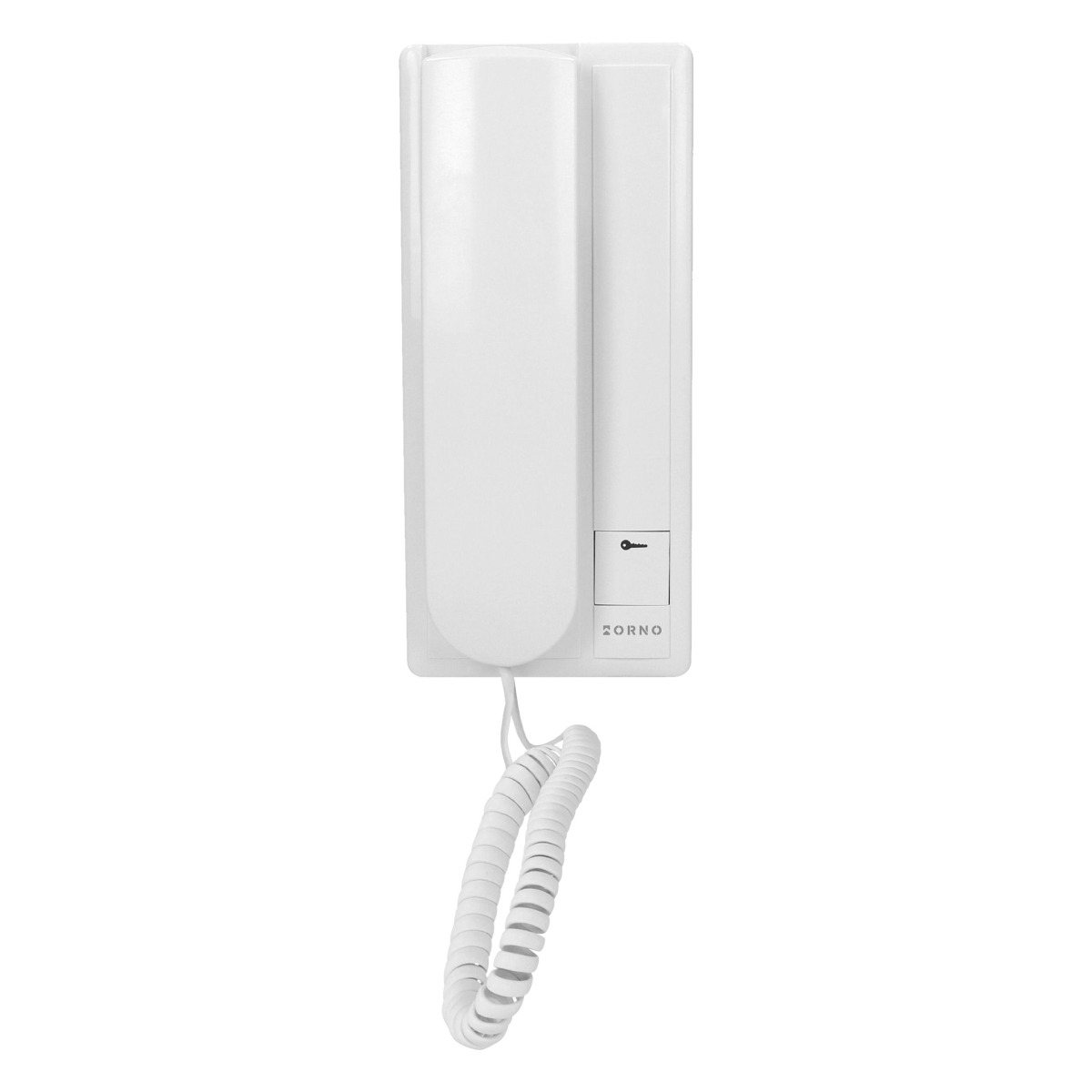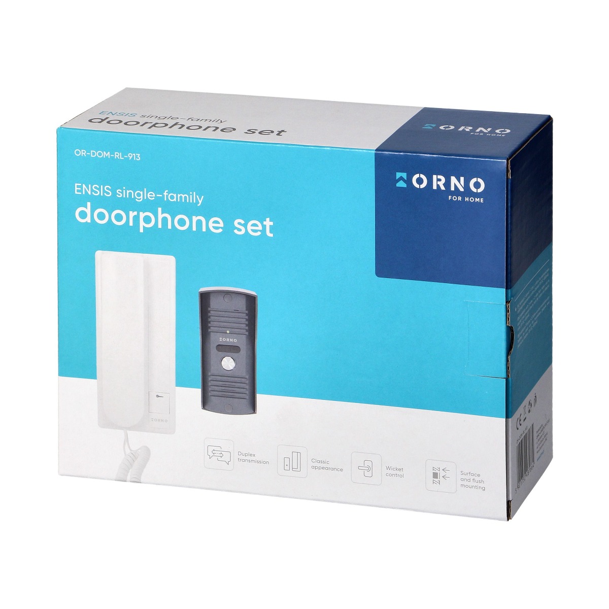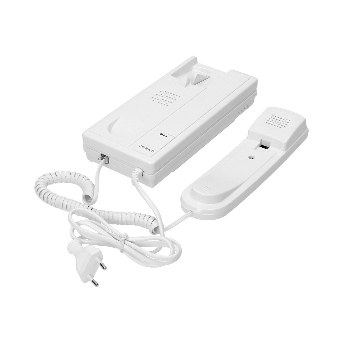 ORNO – 4 vezetékes, 1 lakásos kaputelefon szett, falon kívüli vandálbiztos kültéri egység, elektromos zár vezérlése, beltéri egység méretei: 98x215x68mm, kültéri egység méretei: 60x140x23mm, 230Vac