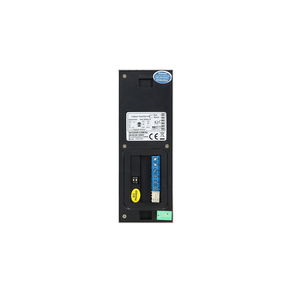ORNO – 2 vezetékes, 1 lakásos videokaputelefon szett, falon kívüli vandálbiztos kültéri egység, 7″ érintőképernyős beltéri monitor, elektromos zár vezérlése, beépített 125kHz RFID olvasó, rögzítéshez microSD kártya foglalat, Wi-Fi funckió okostelefonokhoz, ingyenes applikáció, 6db CON-TAG kulcstartóval, kültéri egység méretei: 47x133x26mm, beltéri egység méretei: 230x120x25mm, maximum 2db beltéri egységig bővíthető, intercom funkció,
