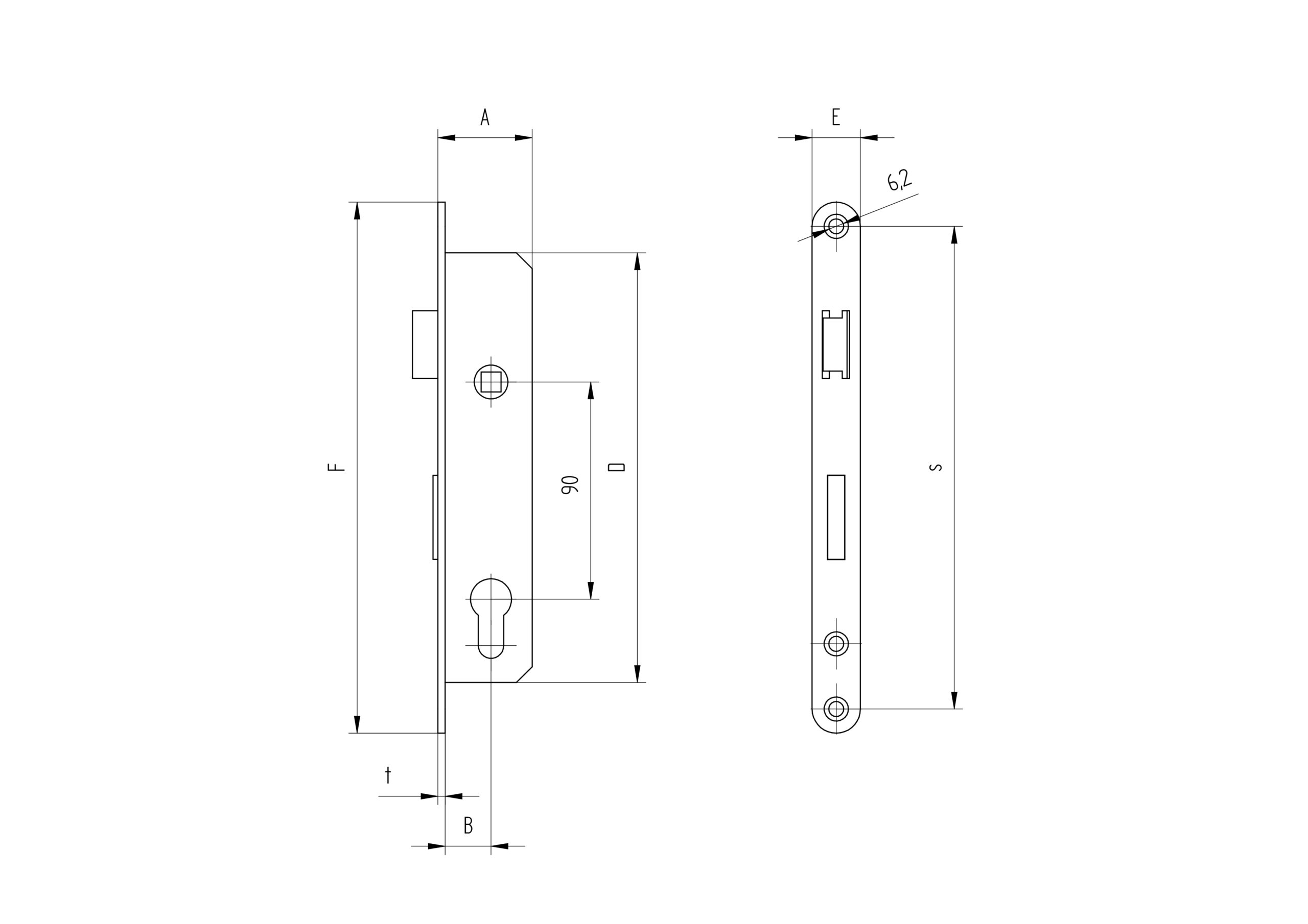 Anyag: Szén acél, Felület kezelés: Horganyzott, Tengely osztás: 90mm, s: 200, t: 3, A: 39, E: 20, F: 220, B: 19, D: 178
