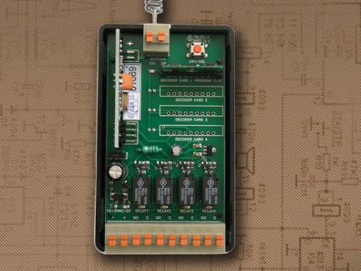 4 csatornás vevőegység, 433,92Mhz, 12/24V AC/DC, Kompatibilis az összes azonos frekvencián működő Slave távnyitóval, és azok kiváltóival.