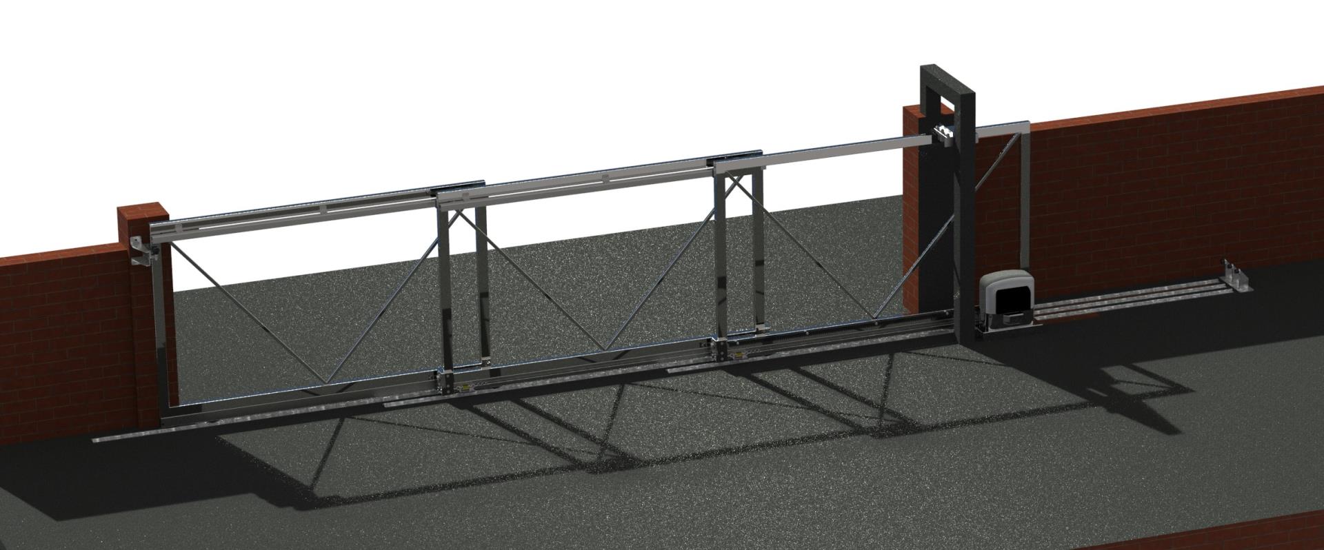 Teleszkópos rendszer, 3 részes TOLÓKAPUHOZ, max. 15 méteres kapunyíllásba.