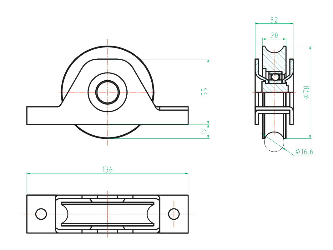 Tolókapu kerék -d16mm Zn, D80 U-profilhoz