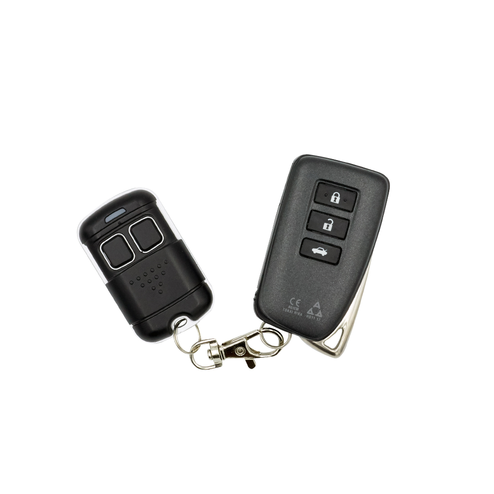 2 csatornás, univerzális rádióadó, 270-870MHz, klónozós kivitel, 2 gombjára 2 különböző márka is feltanítható. Kompatibilis: ALLMATIC, APRIMATIC, BENINCA, BFT, CAME, CARDIN, CASALI, CASIT, CHAMBERLAIN, DASPI, DEA, DITEC, DOORHAN, DUCATI, ERREKA, FAAC, FADINI, GIBIDI, GENIUS, GENIE, GIBIDI, HÖRMANN HSM, KEY, KING GATES, KLING, LIFE, MHOUSE, MARANTEC, MERLIN, NICE, NOLOGO, NOVOFERM, NORMSTAHL, PRASTEL, PROTECO, PUJOL, RIB, SEA, SEAV, SOMFY, STAGNOLI, SOMMER, TAU, TELCOMA, VDC, V2, Stb… CR2032 elemmel.